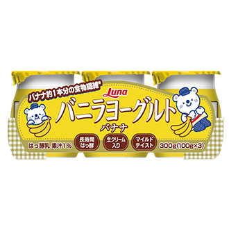 - 乳製品(国内製造、外国製造)、砂糖、イヌリン(食物繊維)、バナナ果汁、卵黄、寒天/香料、(一部に卵・乳成分・バナナを含む)