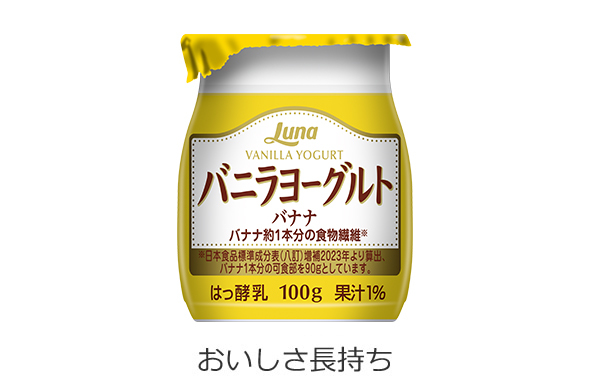 バニラヨーグルトの豊かな風味を失わず、長時間はっ酵を必要とするため、独特の形状をした容器を使用しています。 最後のひと口までバニラの風味を楽しんでいただけるよう工夫されています。